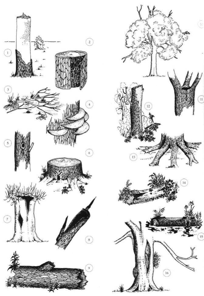 Verschillende vormen van dood hout, zoals staande dode bomen, stronken, takhout en liggende stammen, bieden leefruimte, voedsel en schuilgelegenheid voor insecten, schimmels, vogels en andere organismen. Daarbij is niet alleen de hoeveelheid dood hout van belang, maar vooral ook de variatie in vorm, ligging en boomsoort. De combinatie van dood hout met bloemrijke vegetatie versterkt deze ecologische waarde nog verder.